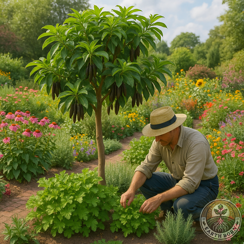 Harvest pods once they turn dark brown and begin to dry on the tree—usually 2–3 years after planting. Use pruning shears to avoid damaging branches.